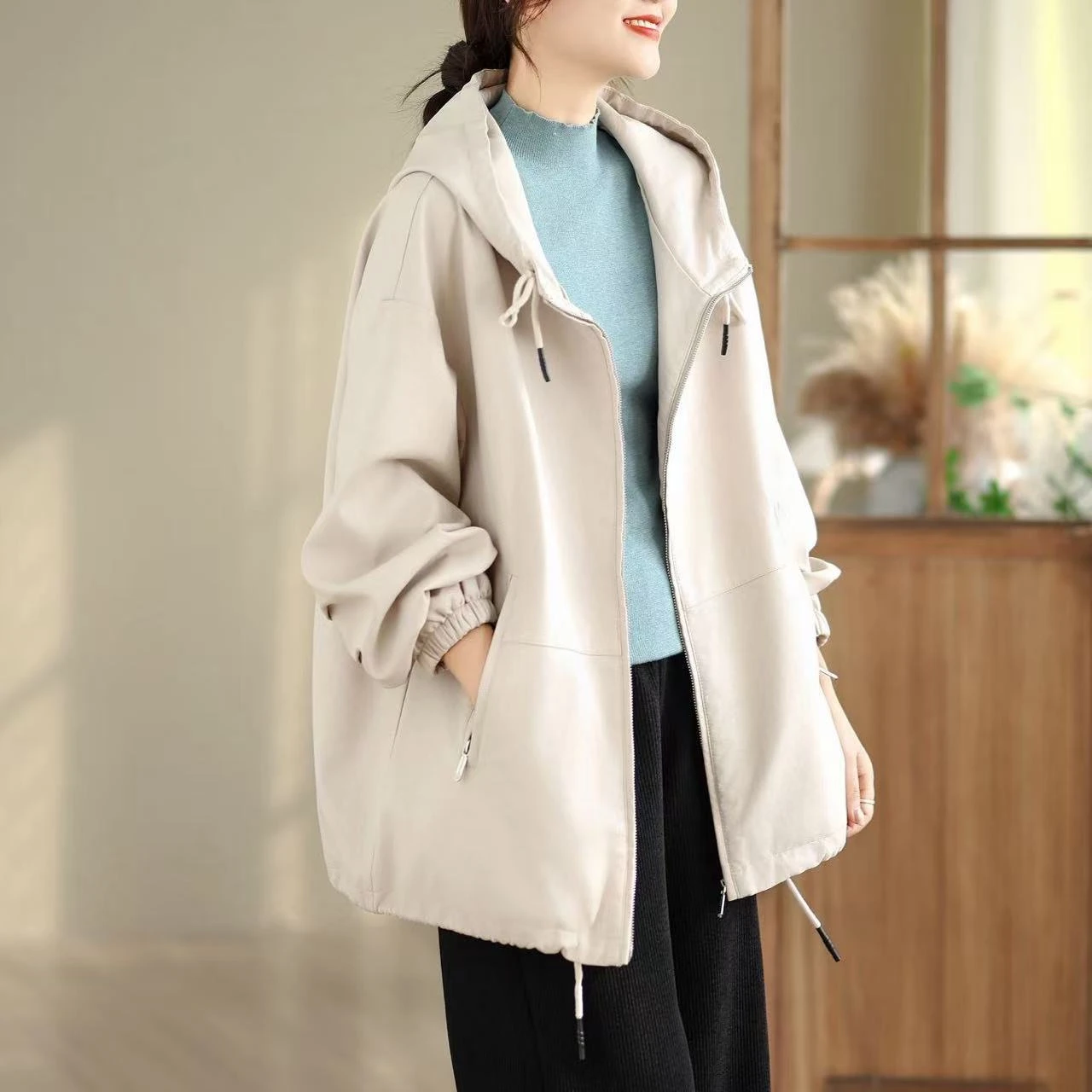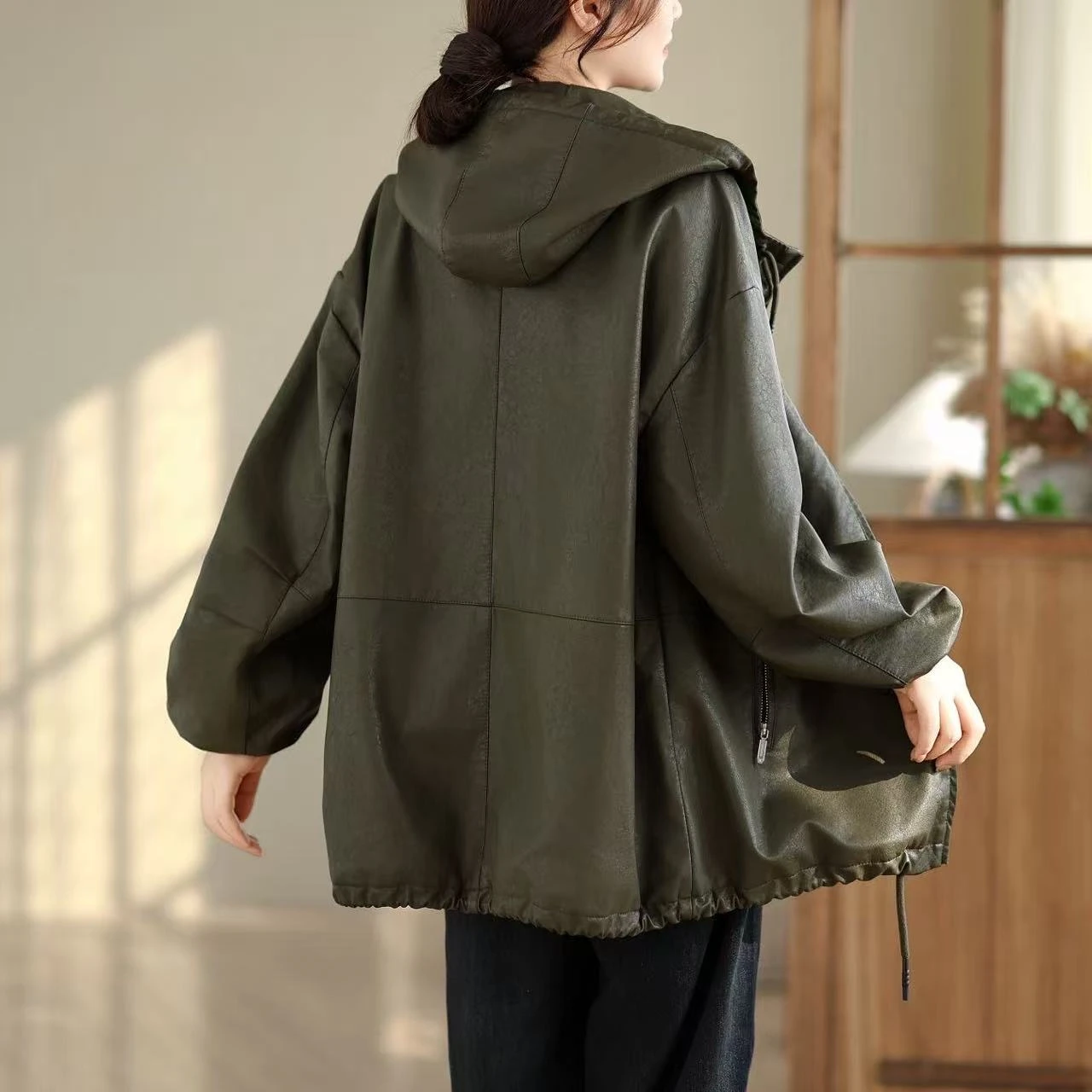81665 单色皮衣夹克 PU蛋白皮革